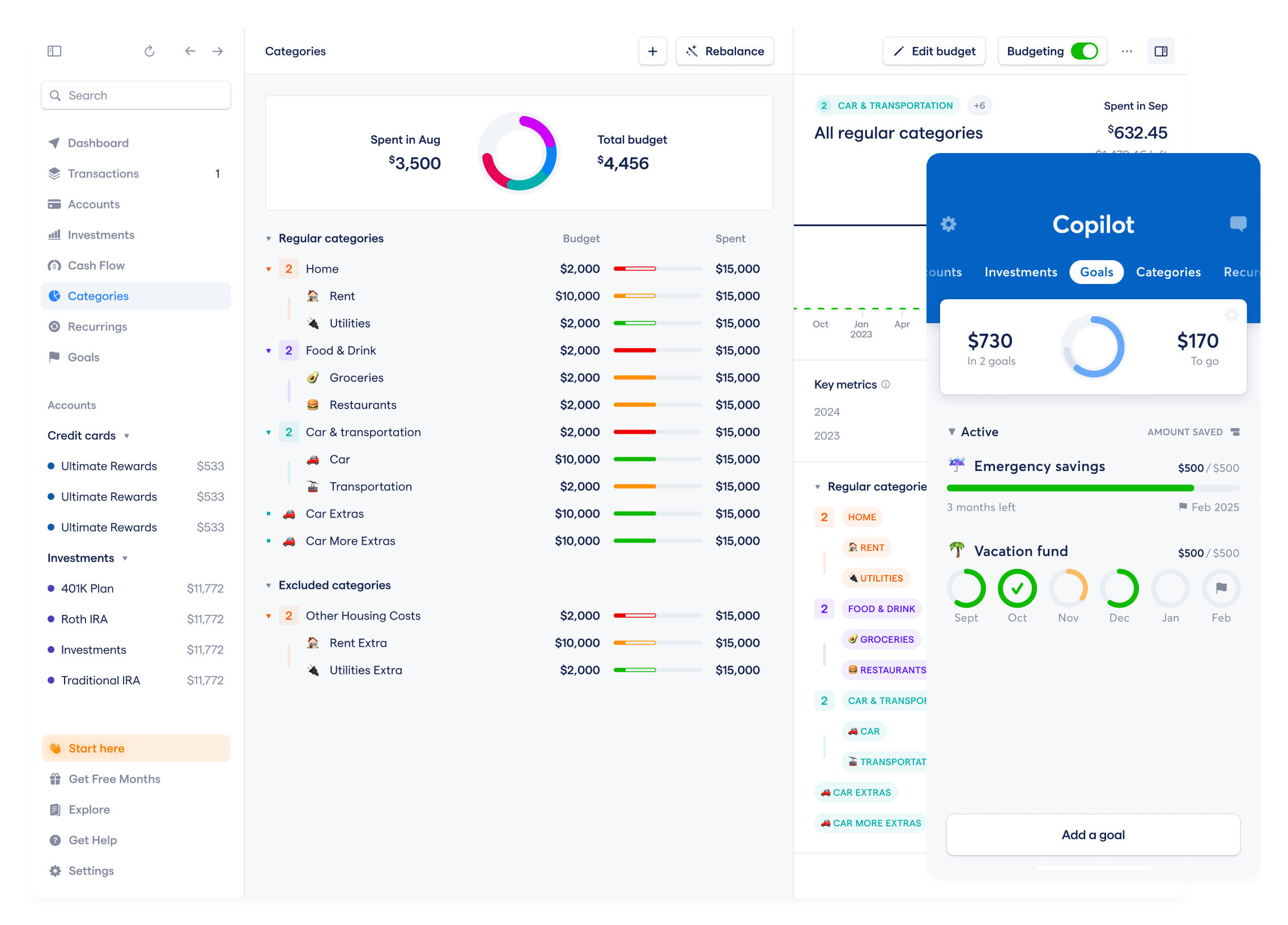 I joined the Copilot Money team in late 2024 at an important crossroads: fresh off an influx of new users from the shutdown of their main competitor, the team needed to orient themselves towards a future of hard work and growth. I was brought in to help set the quality bar for the product, and to help ship a powerful new feature: Goals.